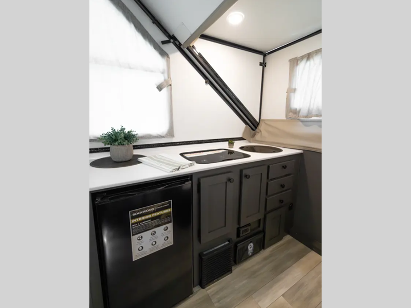 Forest River Rockwood Hardside Series A-frame camper A101LE highlights: Galley ... more about Rockwood Hardside Series A101LE