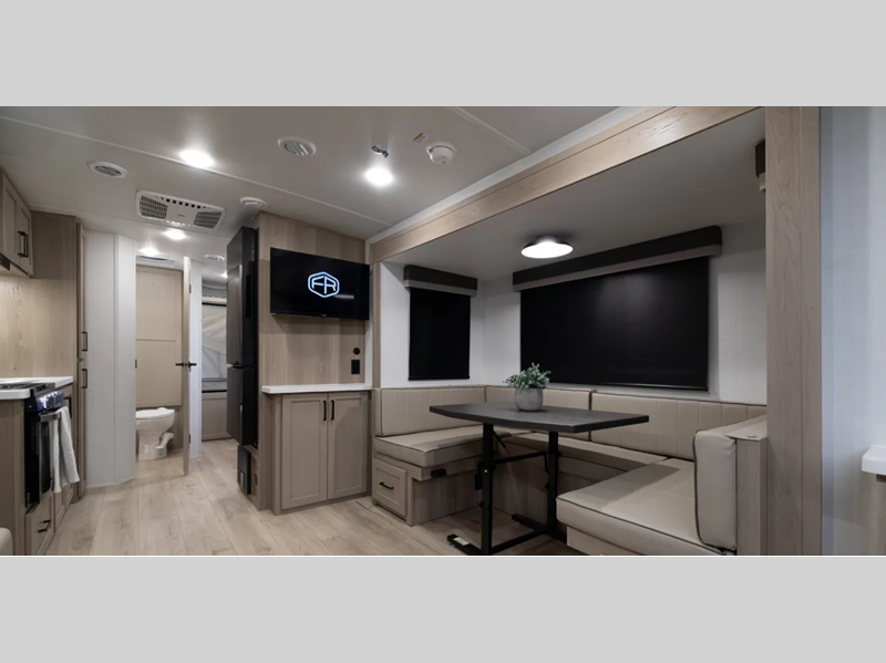 The six-sided aluminum framed construction and composite structural exterior walls are what make these expandables durable, and the easy reach lockable latch system makes set-up a breeze. Towing is made hassle-free thanks to the Dexter sprung axles and nitrogen-filled tires, plus there is a power tongue jack for added convenience. Head inside to roller shades, hidden hinge cabinet doors, residential look kitchen countertops and more comforts!