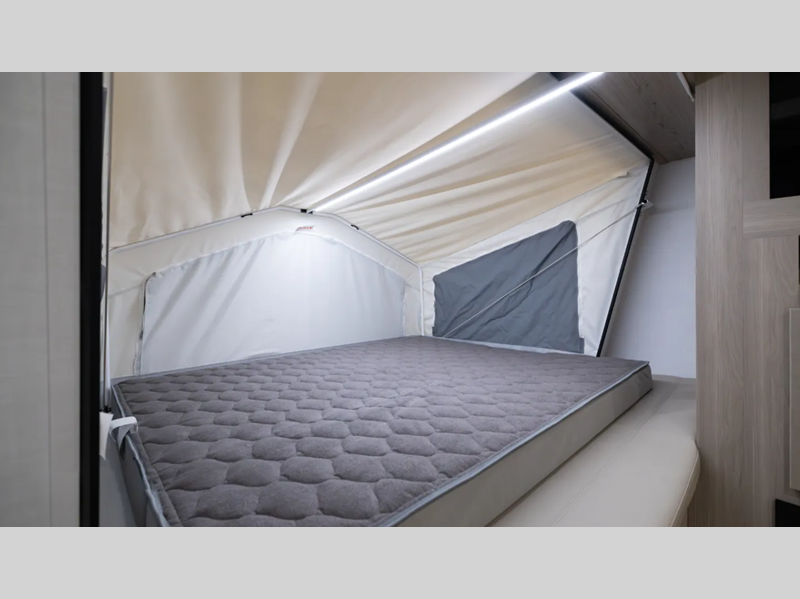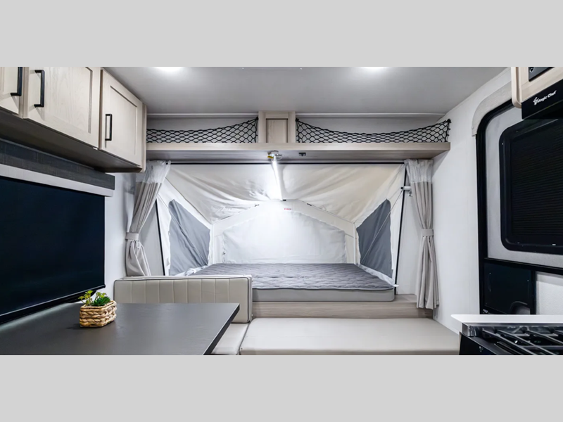 Sleeps 9 Slides 1 Length 24 ft 10 in Ext Width 8 ft Ext Height 10 ft 6 in Hitch Weight 678 lbs Dry Weight 4976 lbs Cargo Capacity 1702 lbs Fresh Water Capacity 54 gals Grey Water Capacity 29 gals Black Water Capacity 29 gals Furnace BTU 35000 btu Available Beds Three Queen Tent End Beds Refrigerator Type 12V Cooktop Burners 3 Number of Awnings 1 LP Tank Capacity 20 lbs Water Heater Capacity 6 gal Water Heater Type Quick Recovery Gas/Electric AC BTU 15000 btu TV Info LR 12V Smart TV Awning Info 17' Power Axle Count 2 Number of LP Tanks 2 Shower Type Radius Similar Floorplans