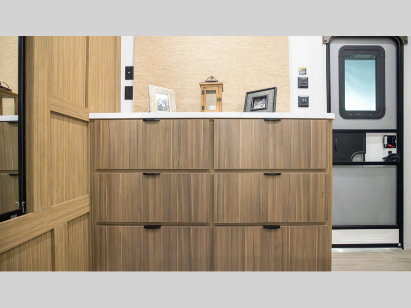 Each destination trailer is built with a durable heated and enclosed Accessibelly, along with slide out awning toppers and a 7' slide out height in the living room so you can relax in comfort. There are JBL interior/exterior speakers, 4K awning blade lighting, and an on-demand tankless water heater to name a few more convenient features.
