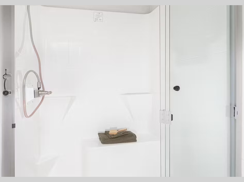 The 8' 4" wide body construction adds 4" of additional living space in the hallways, bedrooms and bathroom, and the on-demand water heater is a convenience you won't want to camp without. Each model also includes heavy duty Saliun G-rated tires for maximum towing security, a one touch, 6-point hydraulic level up system, and a carefree power awning with adjustable arms.